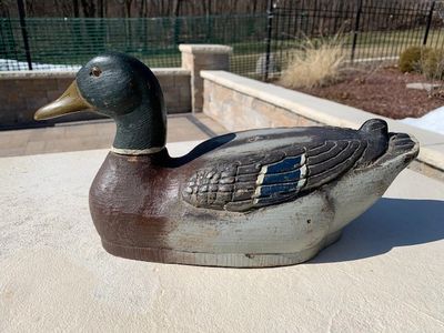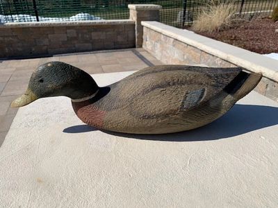 Near perfect mallard hen decoy. Outstanding original paint. Small separation by the neck. Bill is currently a pink color, but you could see green under paint. It does not appear that the bill was repainted outside of the factory. Cold stamped Victor on the bottom indicating that the decoy is from the 1930's or earlier. (Item 396) Asking Price: $125.00