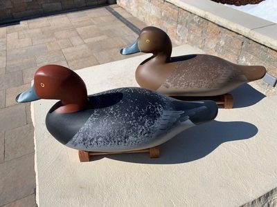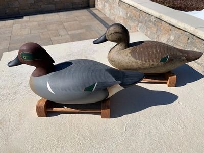 Redhead decoy pair, in outstanding original condition and paint. Great feather detail with painted eyes in the typical Bryan fashion. Both are signed and dated "Charles Bryan, Middle River, MD, 2001". Mint in all respects. (Item 408/409) Asking Price: SOLD